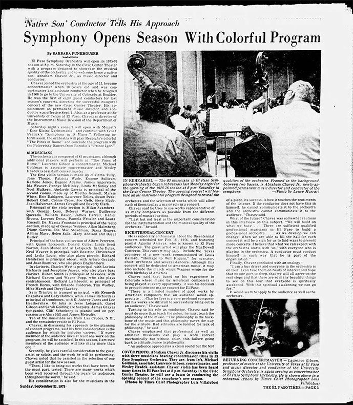 - In 1974, returned to El Paso as professor at UTEP and music director of the El Paso Symphony Orchestra.